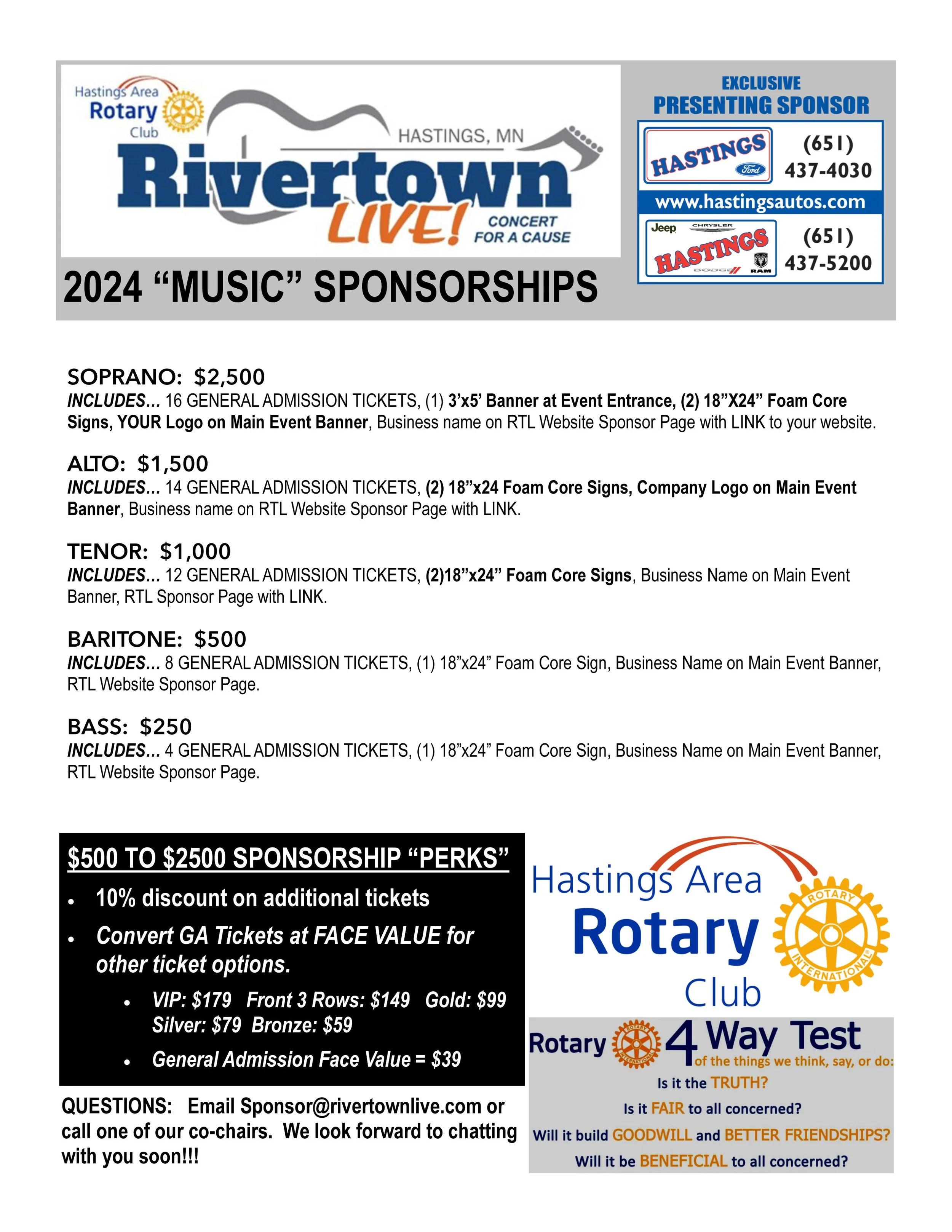 For further information contact Brian at sponsor@rivertownlive.com